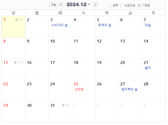 12월 달력