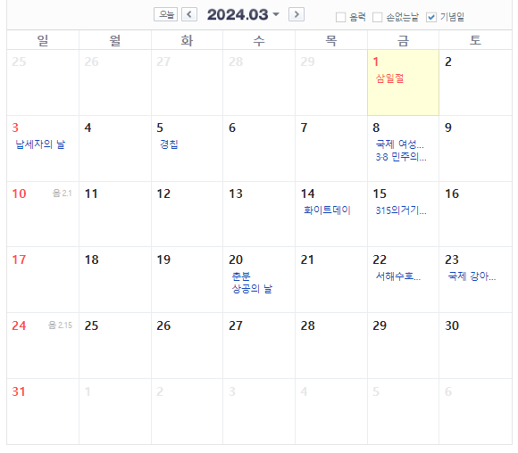 3월 달력