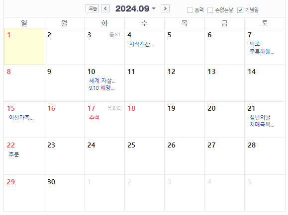 2024년에 주말포함 가장 긴 연휴이기도 합니다. 또한 추석 후보다 추석 전 연휴가 길어 이 또한 여행하기 좋은 날로 아마 많은 숙박시설이 일찌감치 마감되지 않을까 합니다.