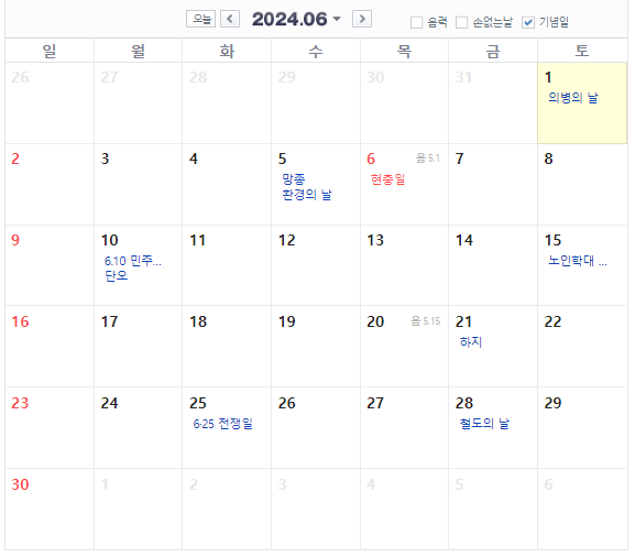 6월에도 역시 역사적인 사건을 기념하는 기념일이 빠지지 않고 있네요.