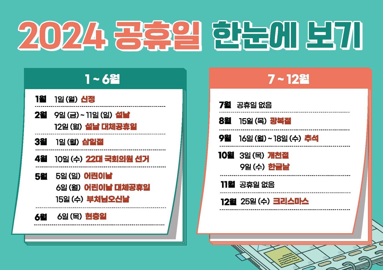 벌써 1월의 반이 지나갔네요. 오늘은 2024년의 공휴일과 대체공휴일을 알아보려고 하는데요. 아마 새해가 밝아오면 근로자이든 CEO이든 그리고 학생등 많은 국민들이 새해의 공휴일과 대체공휴일을 궁금해할 겁니다.