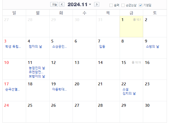 11월도 공휴일이 없는 달입니다.